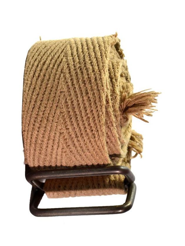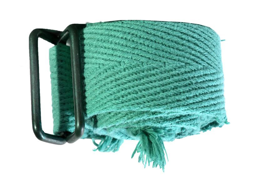 Стильный текстильный ремень, декорированный полоской и фирменным логотипом. Застежка на металлическую пряжку. Отличный вариант на каждый день.